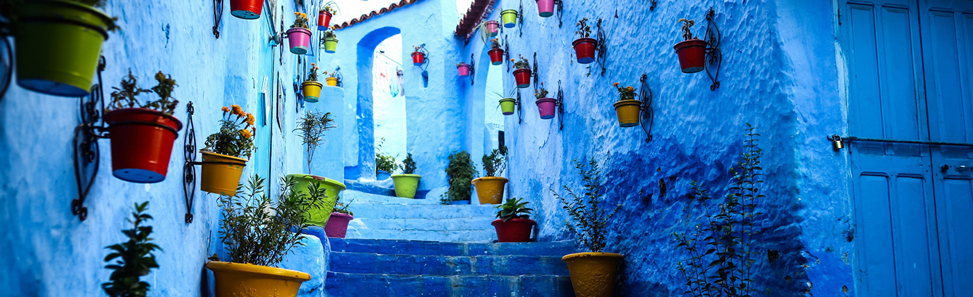 A cultural private tour of Northern Morocco that reveals Hispano-Moorish historical links in the Mediterranean port of Tangiers, the Berber charm of Chefchaouen’s pretty blue medina in the Rif Mountains and the Imperial Cities of Morocco that encompass Morocco’s dynastic heritage: Casablanca, Rabat, Meknes, Volubilis, Fes, Meknes and Marrakech. The tour also allows for free time for your own exploration and relaxation. With guided visits, stays in comfortable traditional riads and small guest-houses, we set an easy daily pace and plenty of downtime. This is a perfect tour for couples, families, students, friends and people of all ages and fitness levels.